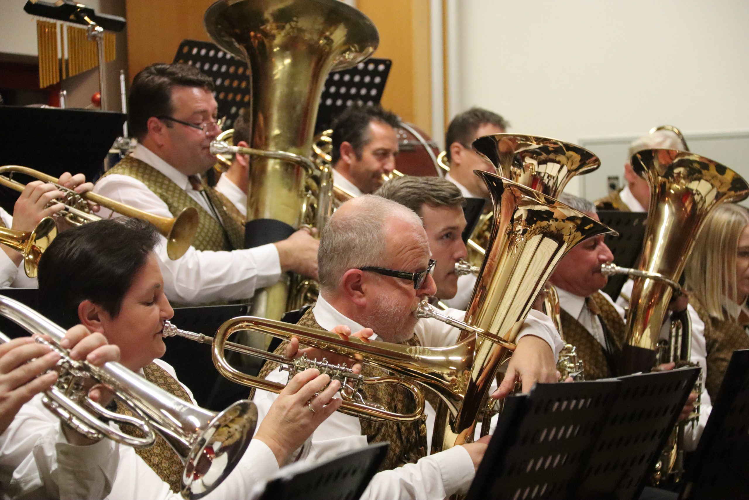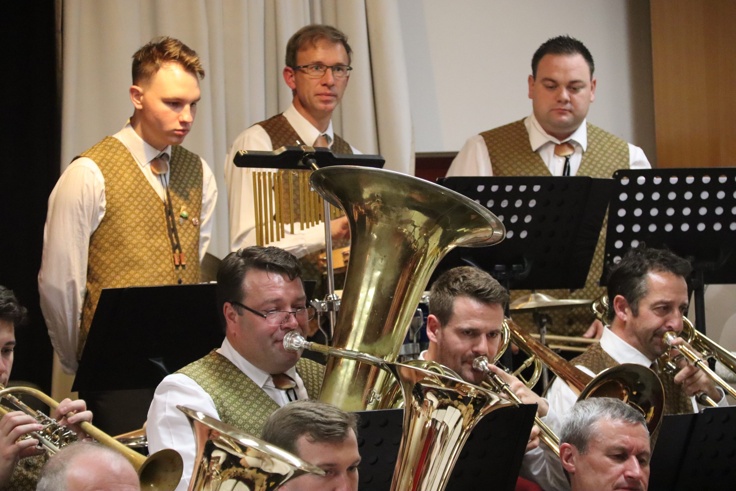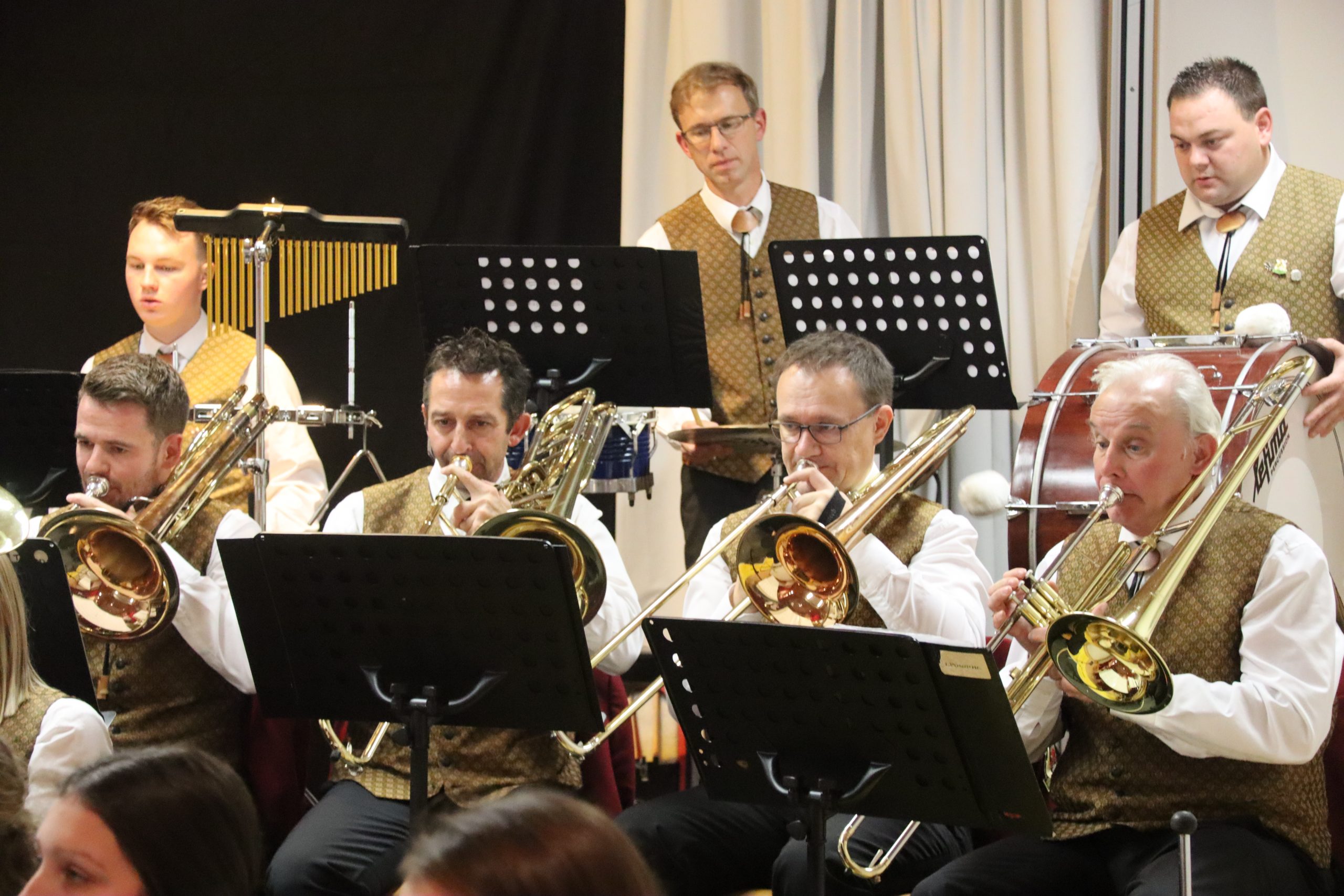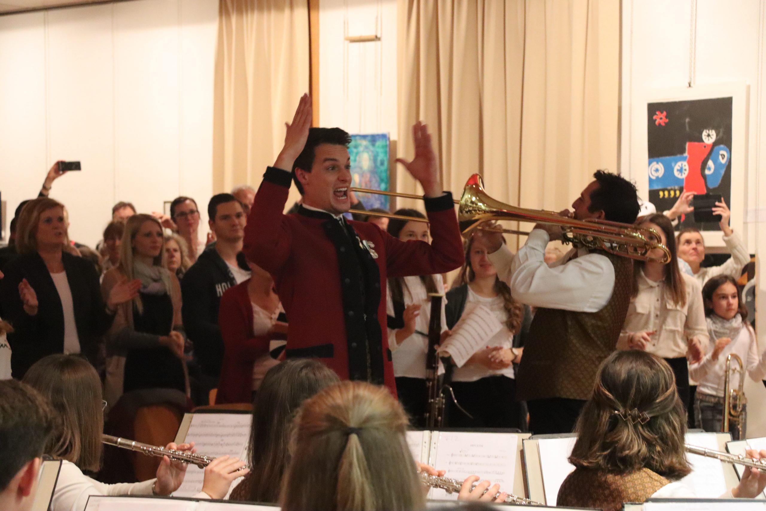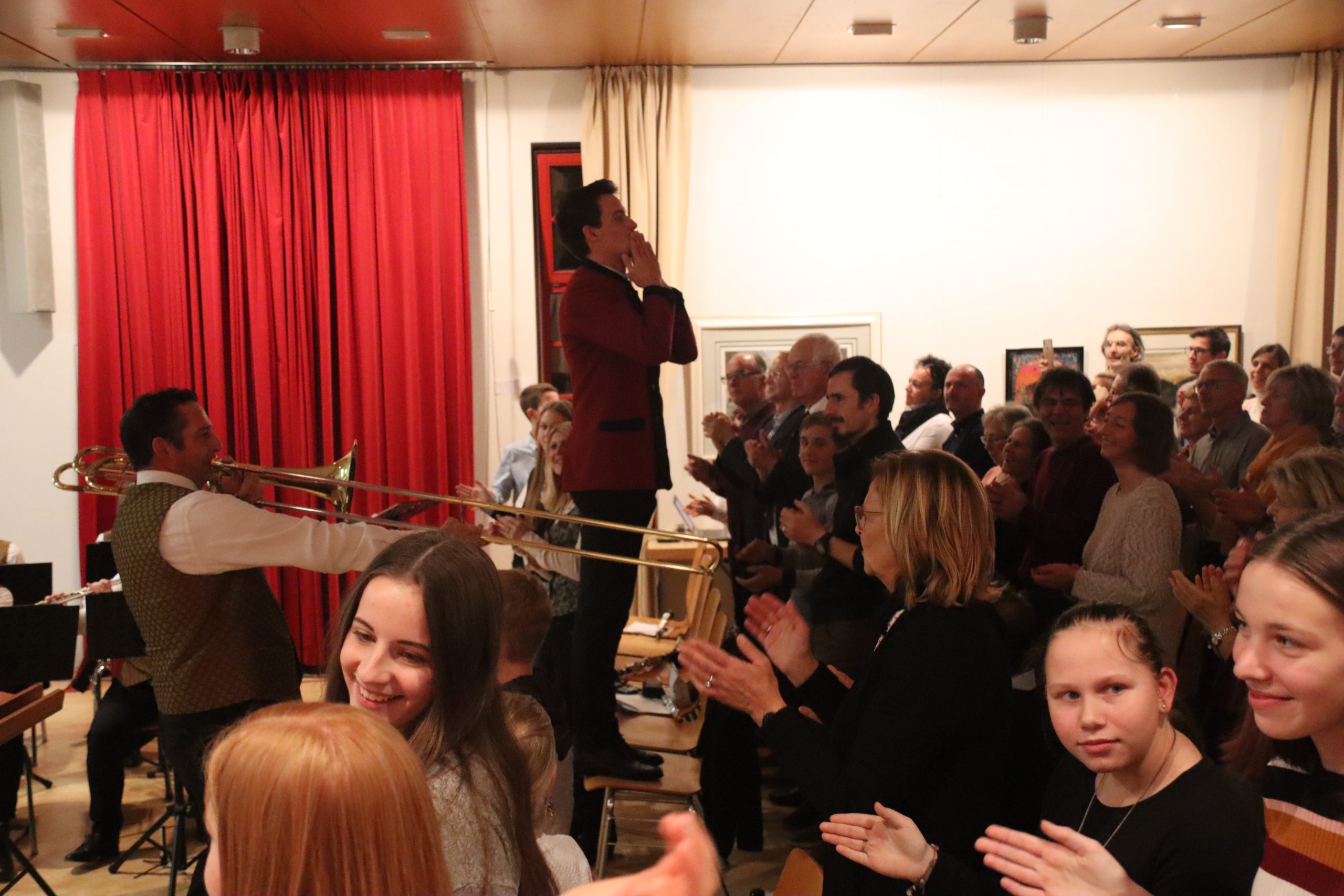 Einer der Höhepunkte des Abends war das Stück „Hey Jude“ von den Beatles, bei dem Wolfgang Tischhart an der Solo-Posaune all sein Können zeigte. Das Publikum hielt es dabei nicht mehr auf seinen Sesseln, sondern stand auf, klatschte im Takt zu diesem Klassiker der Pop-Musik und forderte ein Da capo, das von den Musikern auch gerne gegeben wurde.