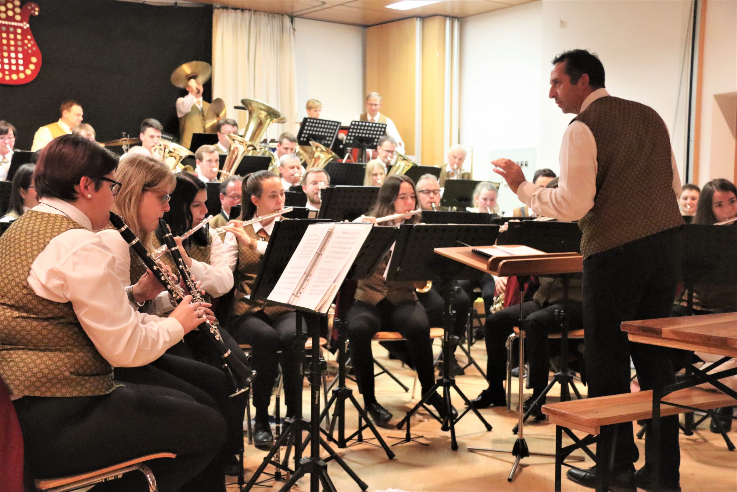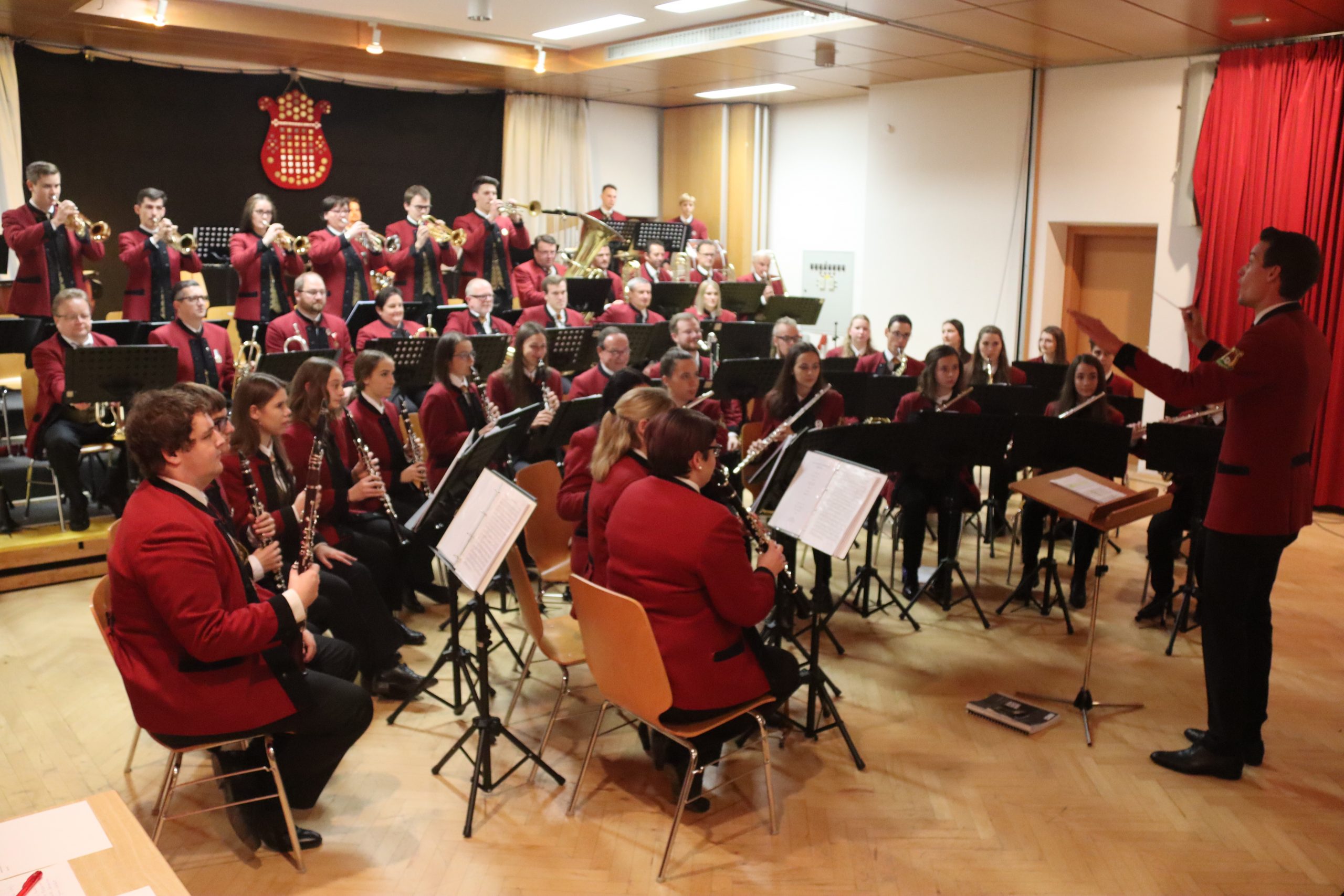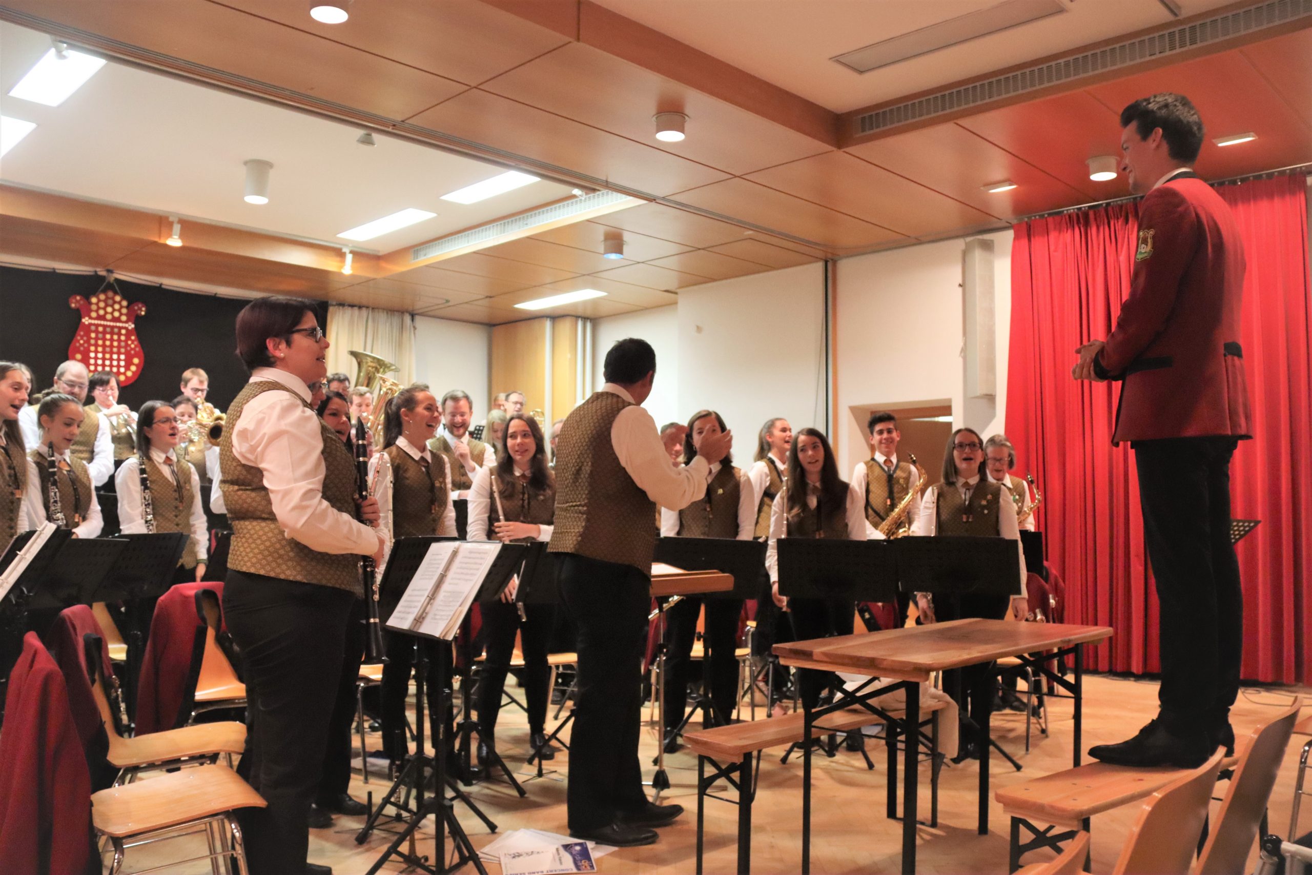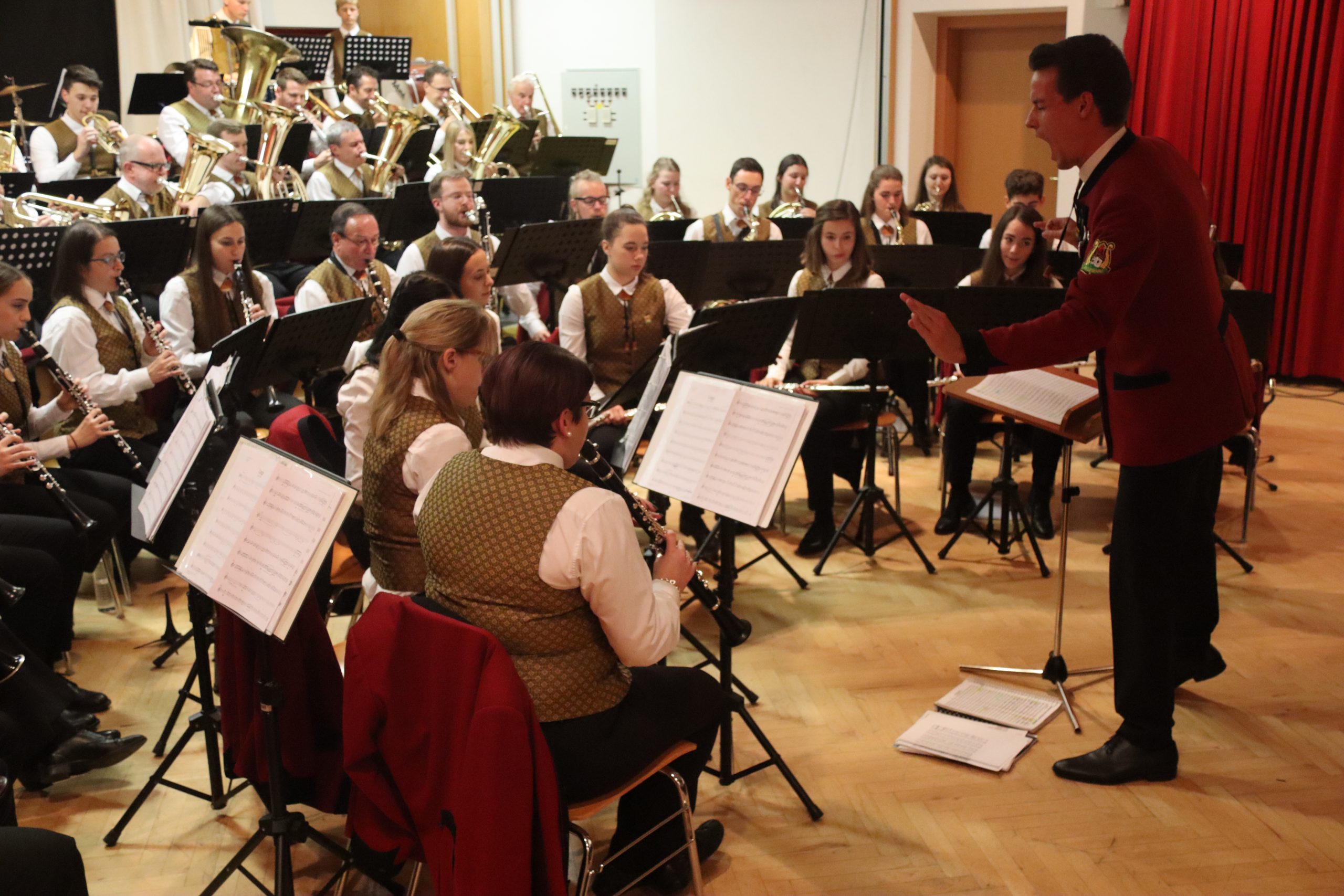 Doch bevor der Musikverein von seinem Kapellmeister Abschied nahm, zeigten die Musikerinnen und Musiker alle Facetten ihres musikalischen Könnens: Mit dem Astronautenmarsch von Ernst Mosch starteten die mehr als 50 Musikerinnen und Musiker mit viel Energie in ihr Konzert. Danach folgten unter anderen die Ouvertüre „König David“ von Georg Stich oder die Polka „Zeitlos“ von Martin Scharnagl (Vierablech); den Schlusspunkt der ersten Hälfte setzte das Jugendensemble unter der Leitung von Sabine Raith, Matthias Reichmann und Marius Laffer. Die jungen Musikerinnen und Musiker verzauberten das Publikum mit „I love Polka“ von Alexander Pfluger, „Don’t Cry For Me Argentina“ aus dem Musical „Evita“ sowie mit der „1st Classic Suite“ – einem bunten Potpourri bekannter klassischer Melodien.