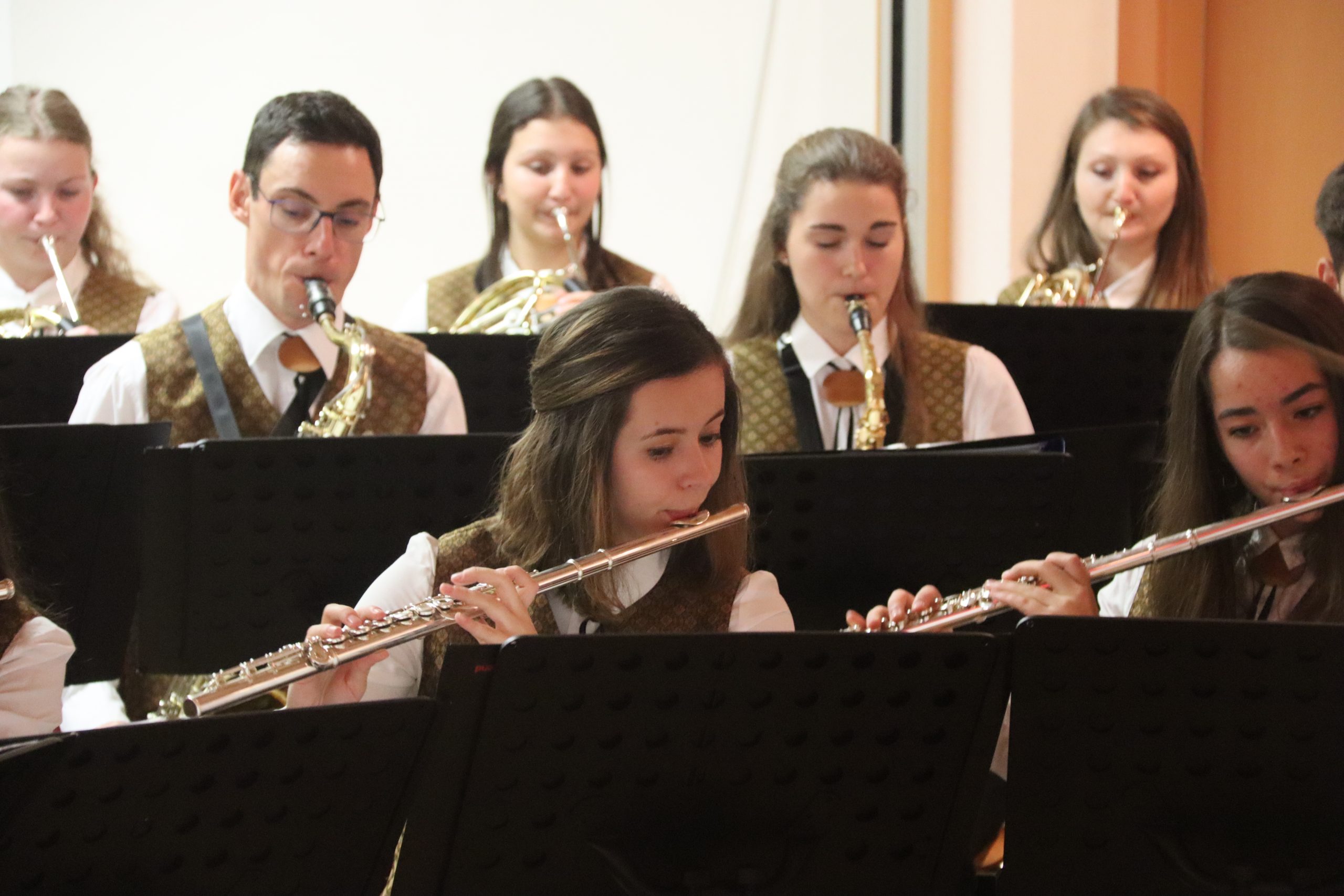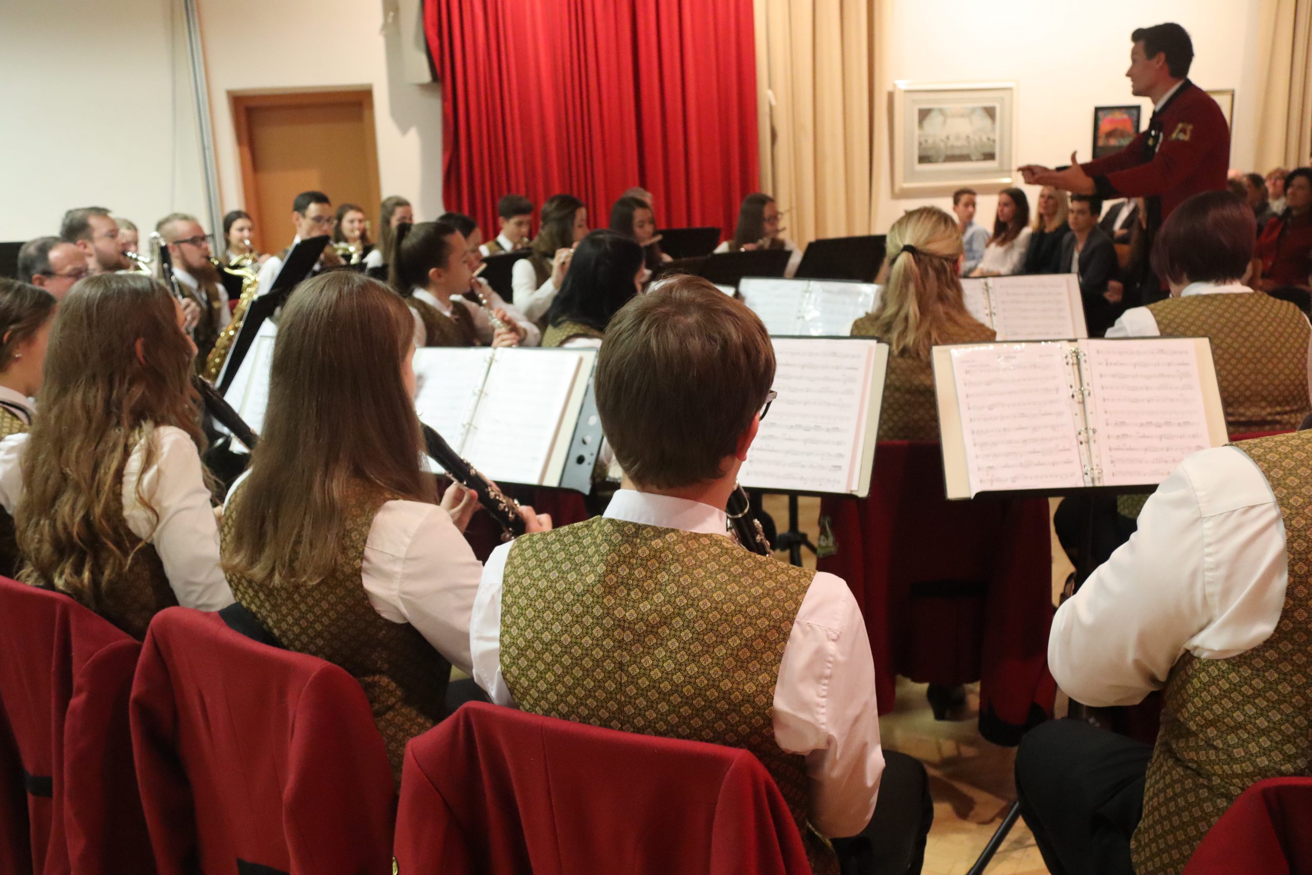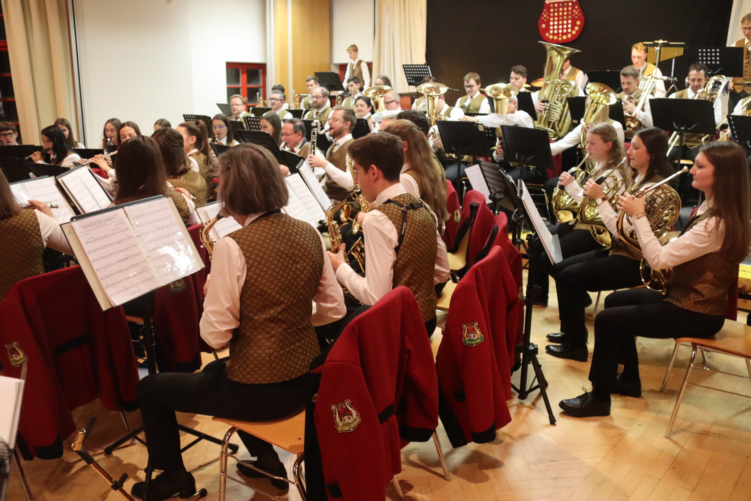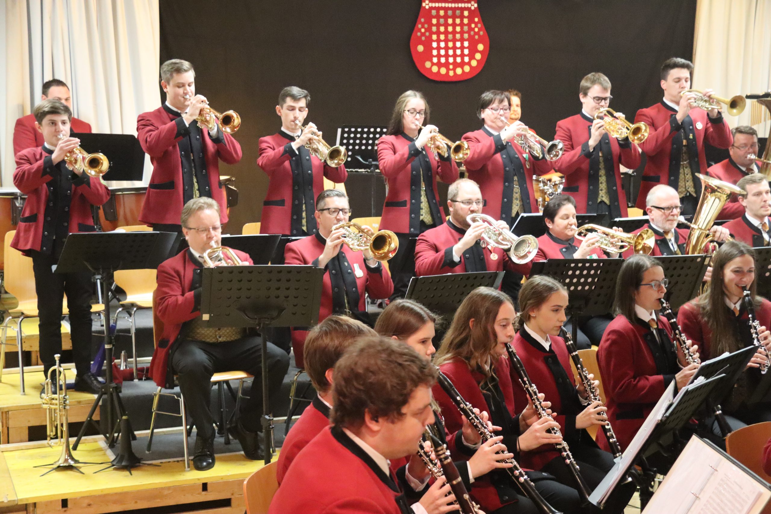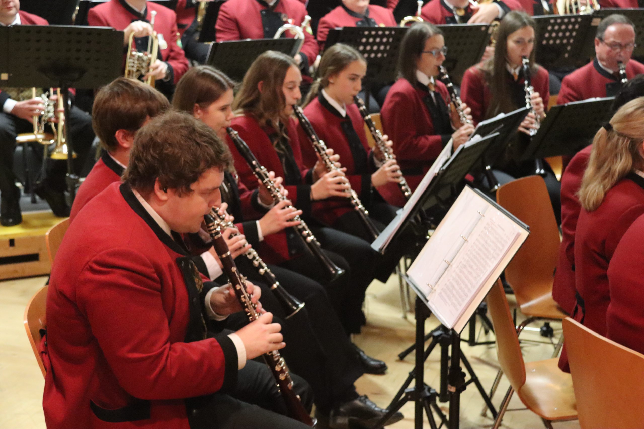 Doch bevor der Musikverein von seinem Kapellmeister Abschied nahm, zeigten die Musikerinnen und Musiker alle Facetten ihres musikalischen Könnens: Mit dem Astronautenmarsch von Ernst Mosch starteten die mehr als 50 Musikerinnen und Musiker mit viel Energie in ihr Konzert. Danach folgten unter anderen die Ouvertüre „König David“ von Georg Stich oder die Polka „Zeitlos“ von Martin Scharnagl (Vierablech); den Schlusspunkt der ersten Hälfte setzte das Jugendensemble unter der Leitung von Sabine Raith, Matthias Reichmann und Marius Laffer. Die jungen Musikerinnen und Musiker verzauberten das Publikum mit „I love Polka“ von Alexander Pfluger, „Don’t Cry For Me Argentina“ aus dem Musical „Evita“ sowie mit der „1st Classic Suite“ – einem bunten Potpourri bekannter klassischer Melodien.
