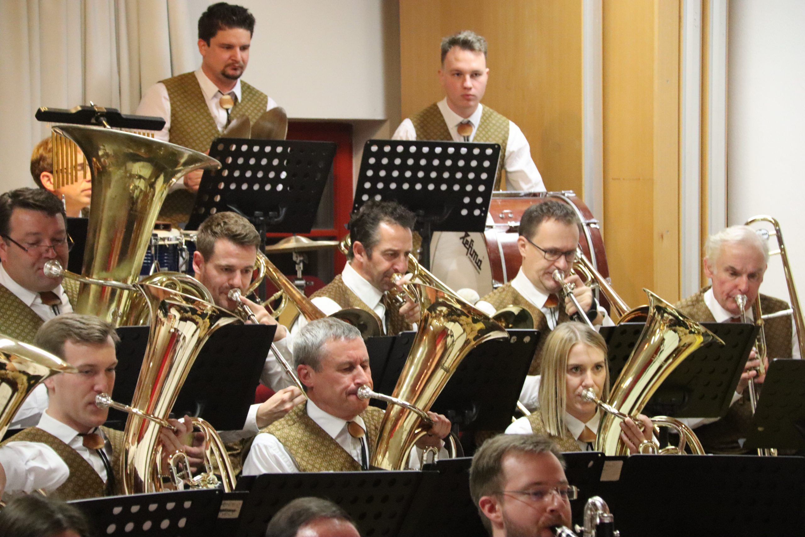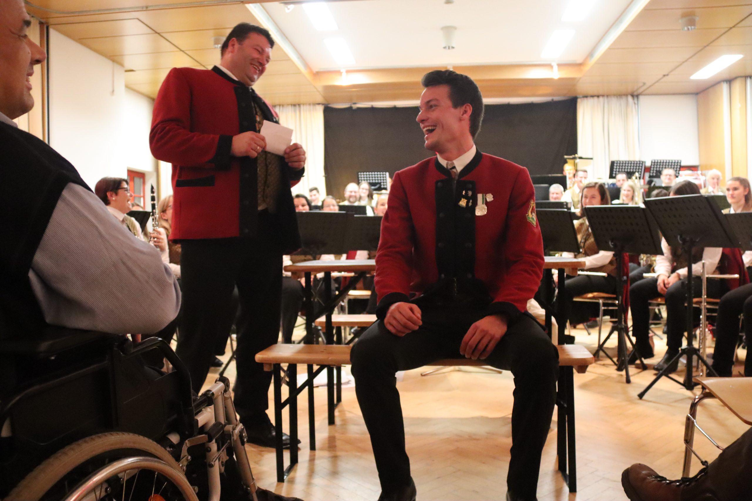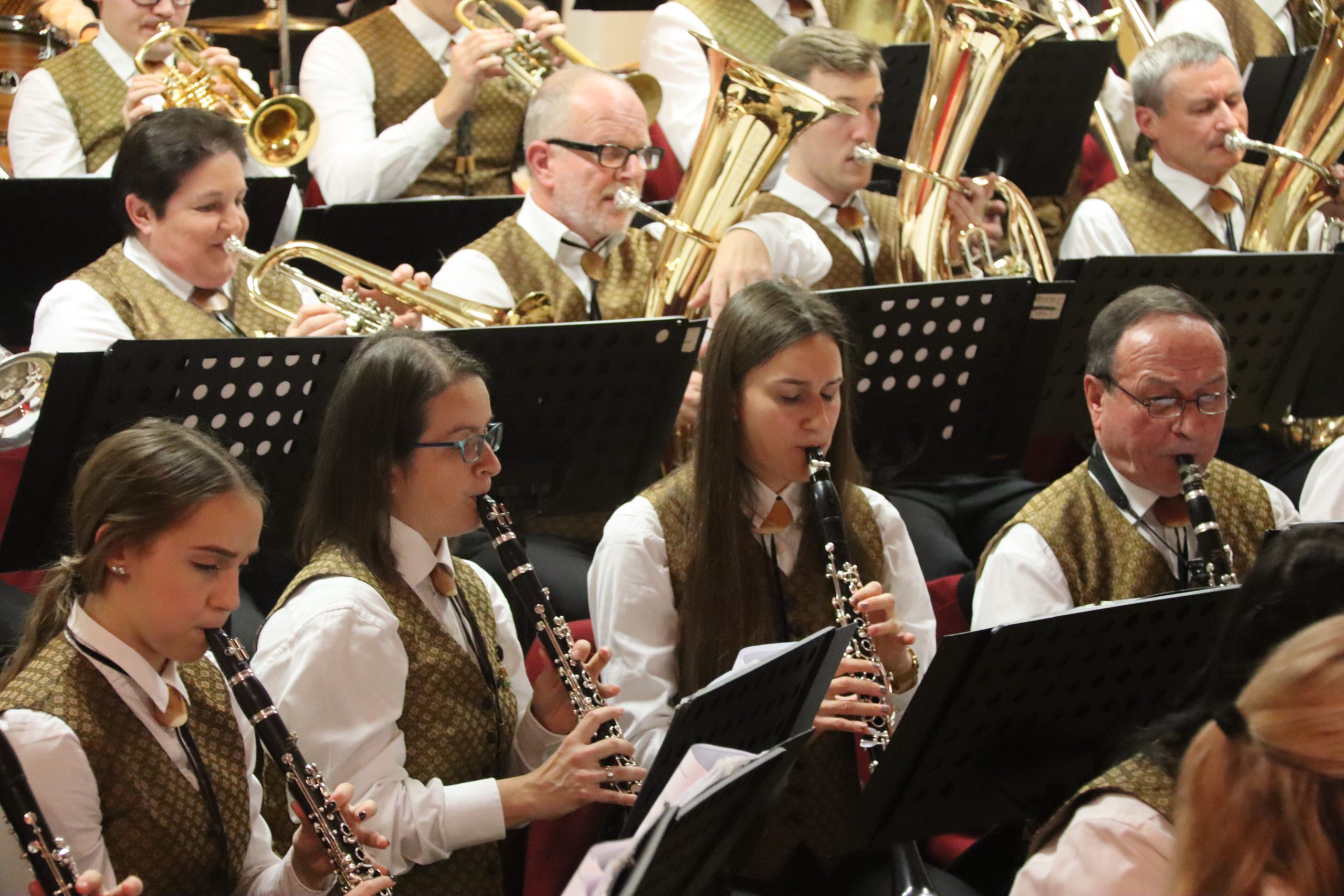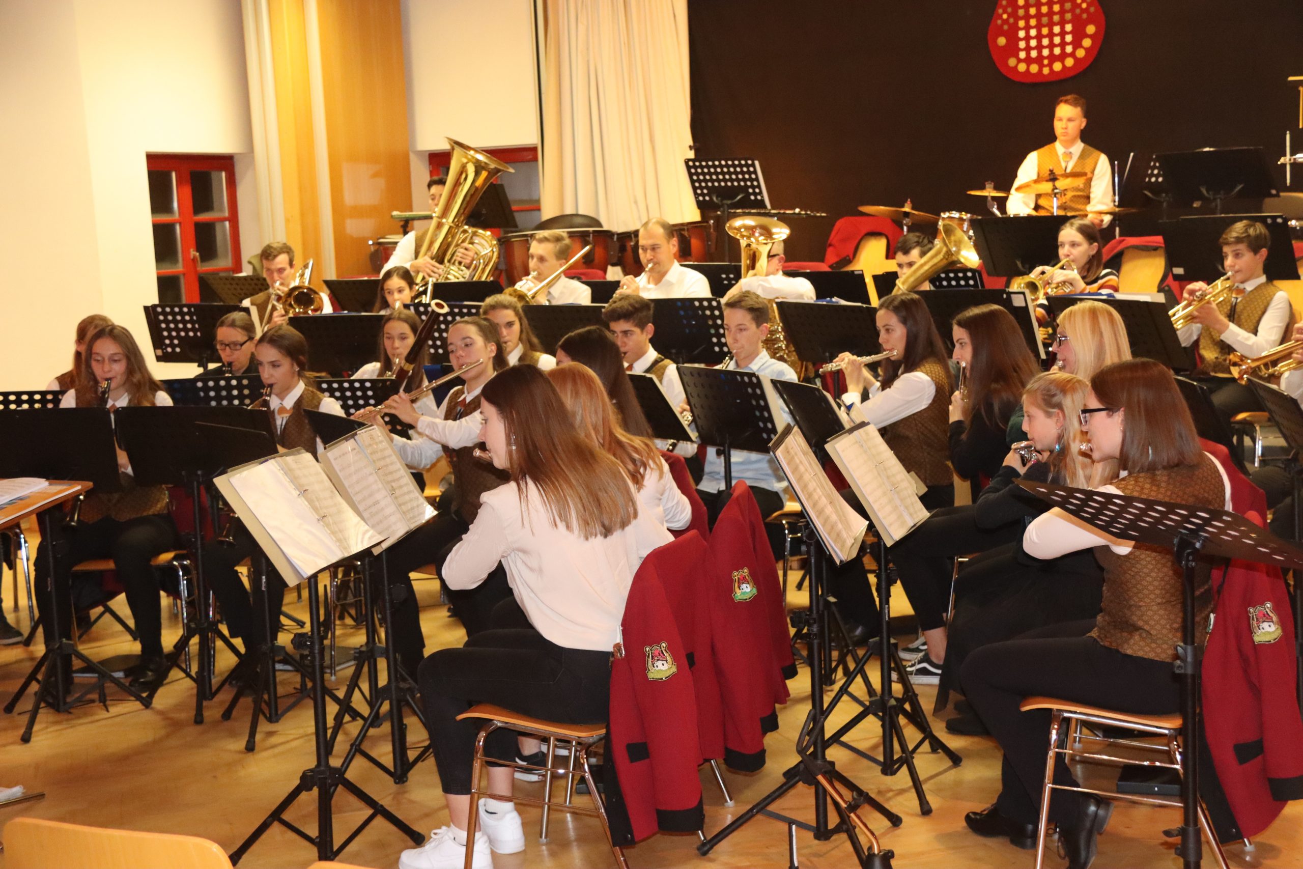 Doch bevor der Musikverein von seinem Kapellmeister Abschied nahm, zeigten die Musikerinnen und Musiker alle Facetten ihres musikalischen Könnens: Mit dem Astronautenmarsch von Ernst Mosch starteten die mehr als 50 Musikerinnen und Musiker mit viel Energie in ihr Konzert. Danach folgten unter anderen die Ouvertüre „König David“ von Georg Stich oder die Polka „Zeitlos“ von Martin Scharnagl (Vierablech); den Schlusspunkt der ersten Hälfte setzte das Jugendensemble unter der Leitung von Sabine Raith, Matthias Reichmann und Marius Laffer. Die jungen Musikerinnen und Musiker verzauberten das Publikum mit „I love Polka“ von Alexander Pfluger, „Don’t Cry For Me Argentina“ aus dem Musical „Evita“ sowie mit der „1st Classic Suite“ – einem bunten Potpourri bekannter klassischer Melodien.