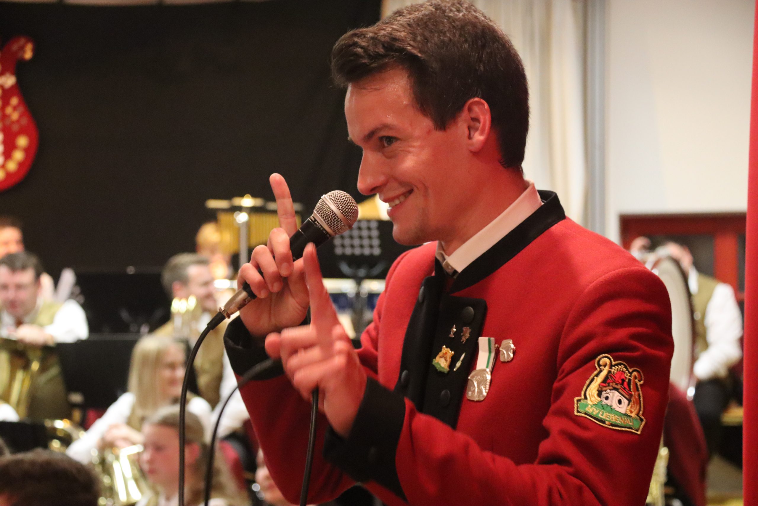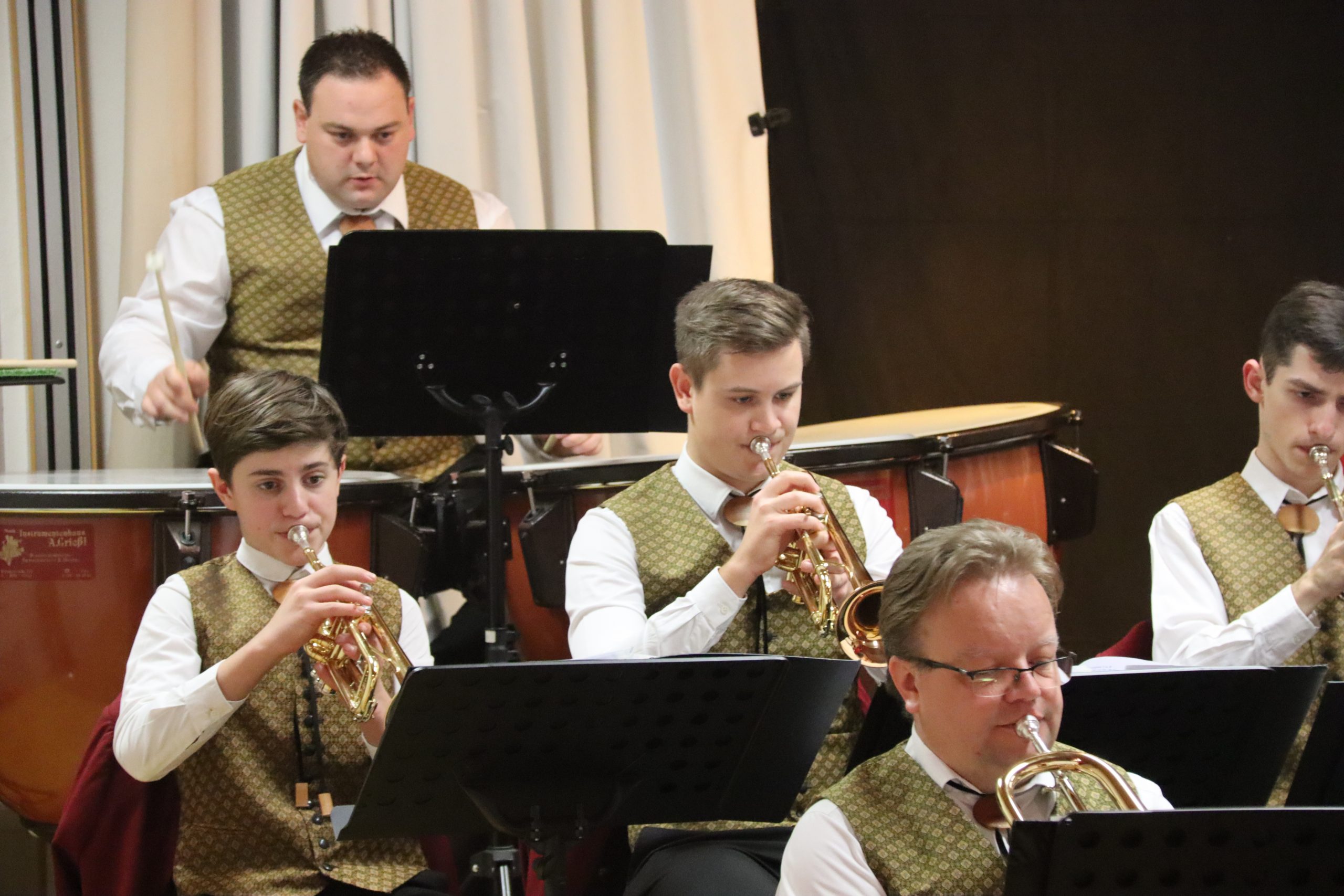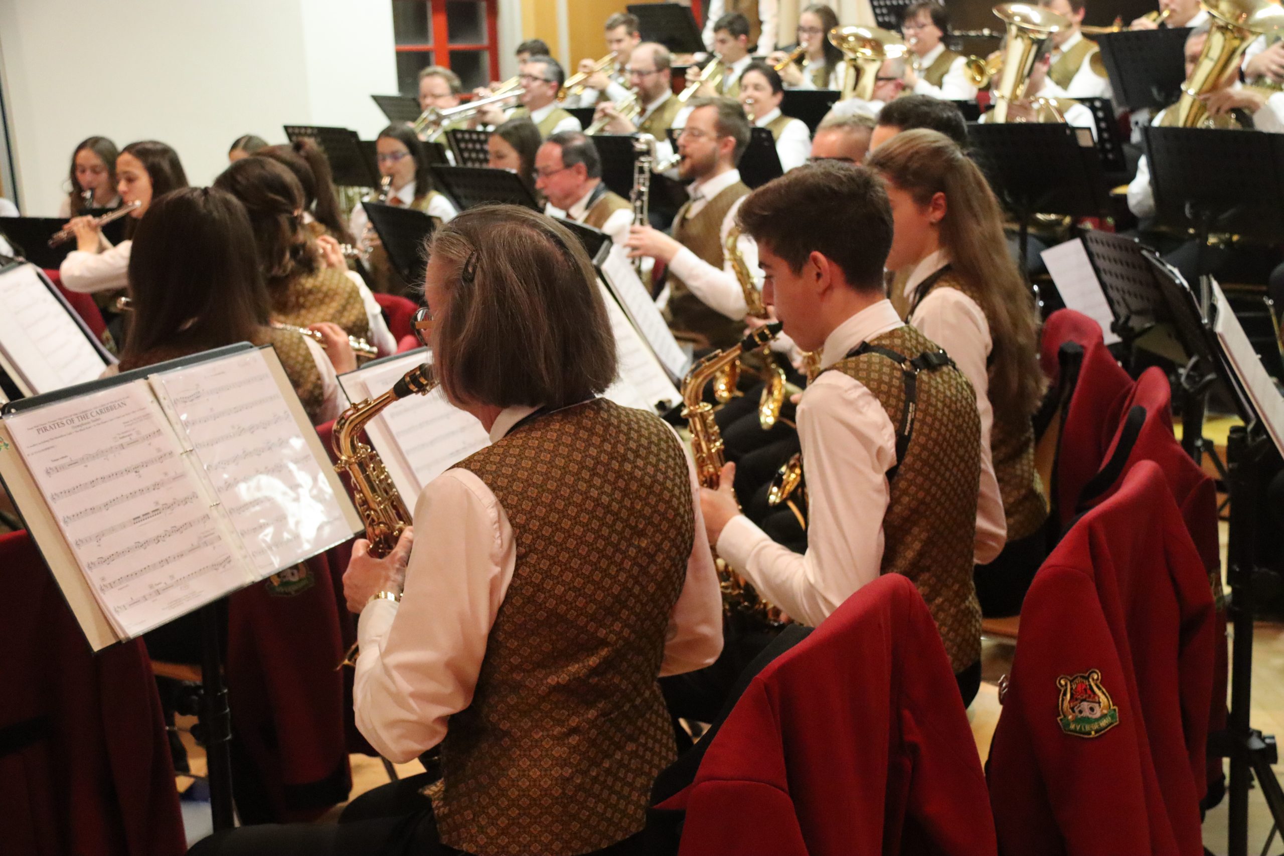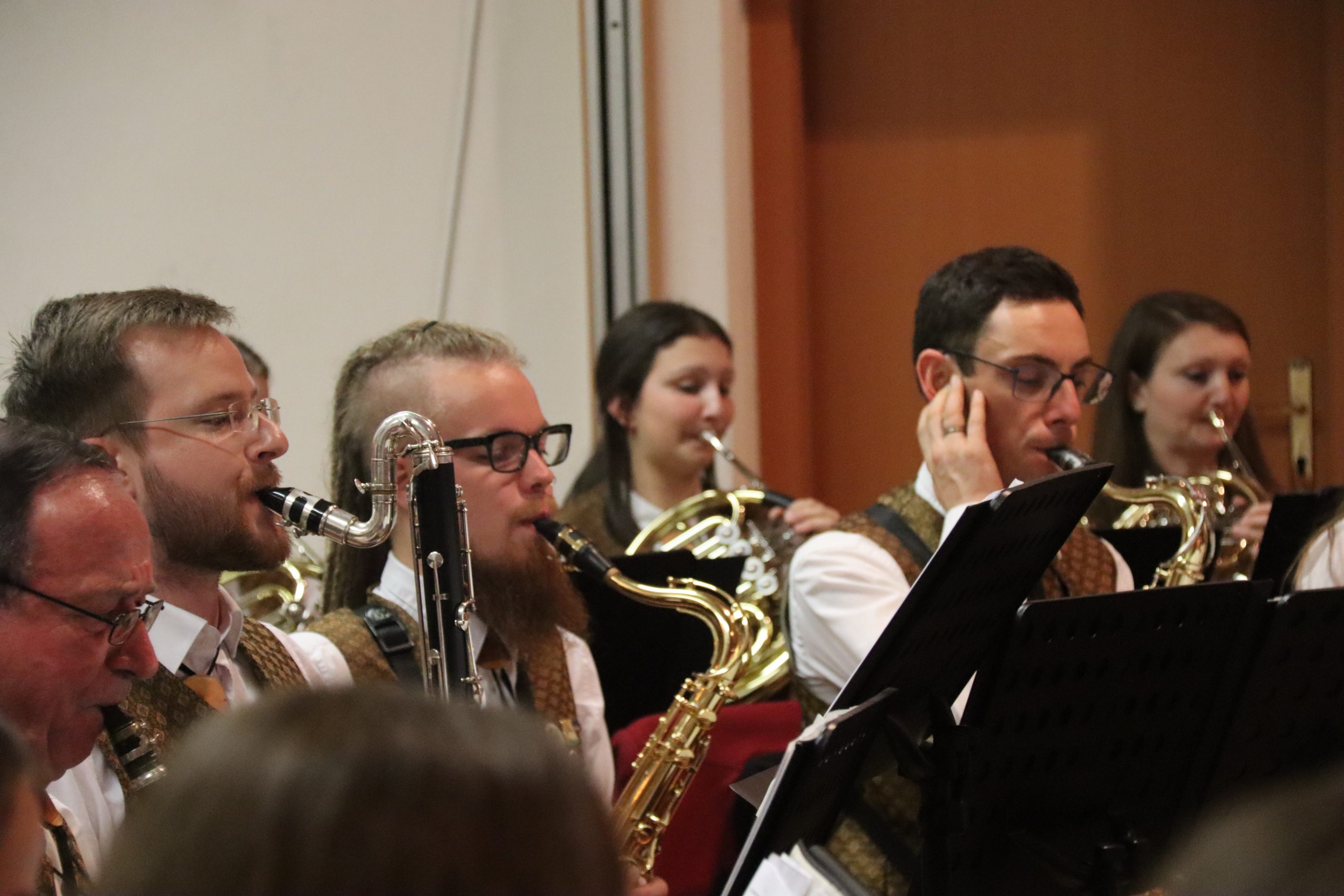 Doch bevor der Musikverein von seinem Kapellmeister Abschied nahm, zeigten die Musikerinnen und Musiker alle Facetten ihres musikalischen Könnens: Mit dem Astronautenmarsch von Ernst Mosch starteten die mehr als 50 Musikerinnen und Musiker mit viel Energie in ihr Konzert. Danach folgten unter anderen die Ouvertüre „König David“ von Georg Stich oder die Polka „Zeitlos“ von Martin Scharnagl (Vierablech); den Schlusspunkt der ersten Hälfte setzte das Jugendensemble unter der Leitung von Sabine Raith, Matthias Reichmann und Marius Laffer. Die jungen Musikerinnen und Musiker verzauberten das Publikum mit „I love Polka“ von Alexander Pfluger, „Don’t Cry For Me Argentina“ aus dem Musical „Evita“ sowie mit der „1st Classic Suite“ – einem bunten Potpourri bekannter klassischer Melodien.