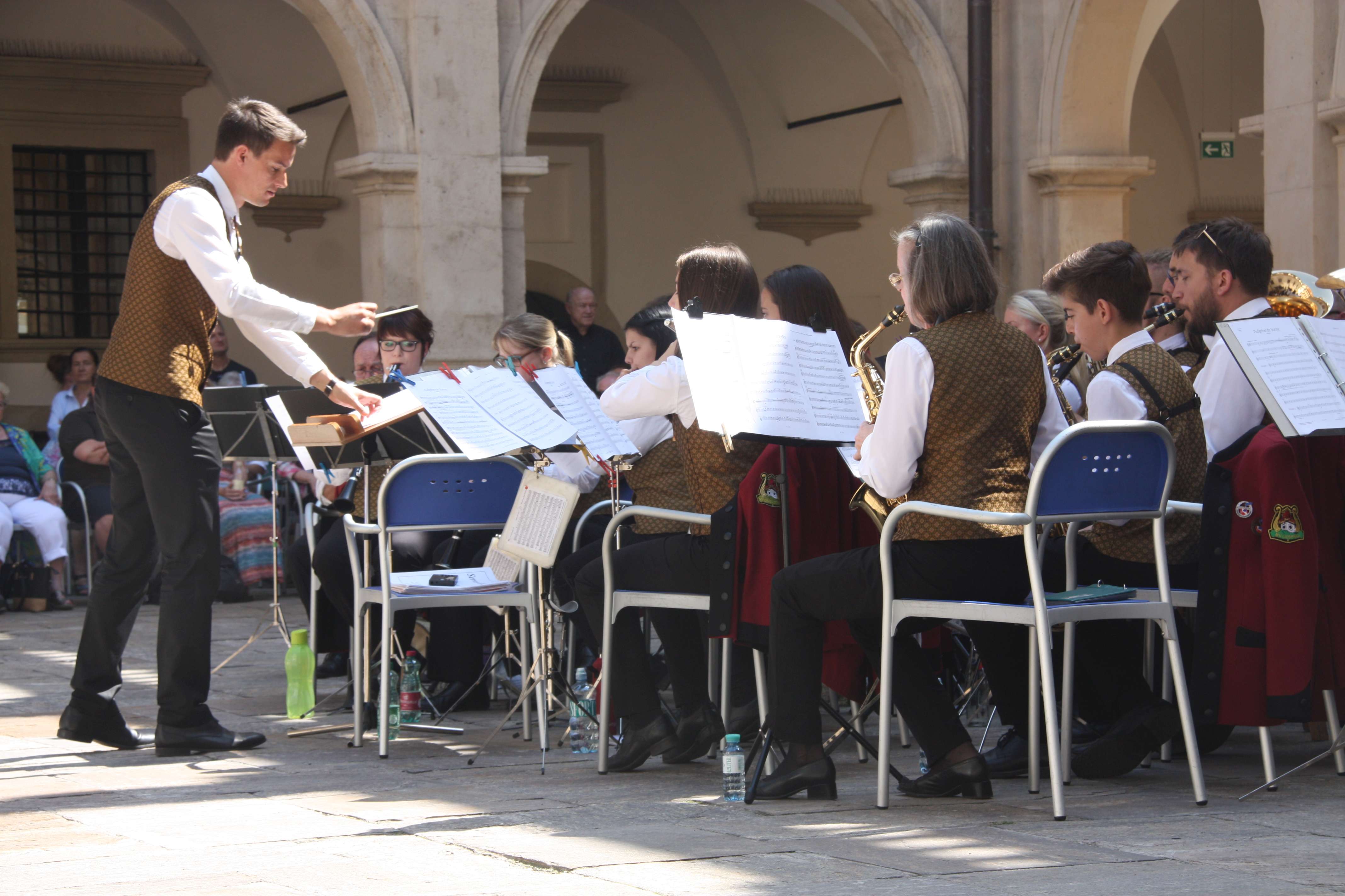 Trotz hochsommerlicher Temperaturen war auch das heurige Landhaushofkonzert des Musikvereines Liebenau am 28. Juli wieder bestens besucht. Die Musikerinnen und Musiker – unter der Leitung von Kapellmeister Johannes Thaler – boten ein abwechslungsreiches Programm, das sowohl traditionelle Marschmusik als auch moderne Blasmusikliteratur beinhaltete.