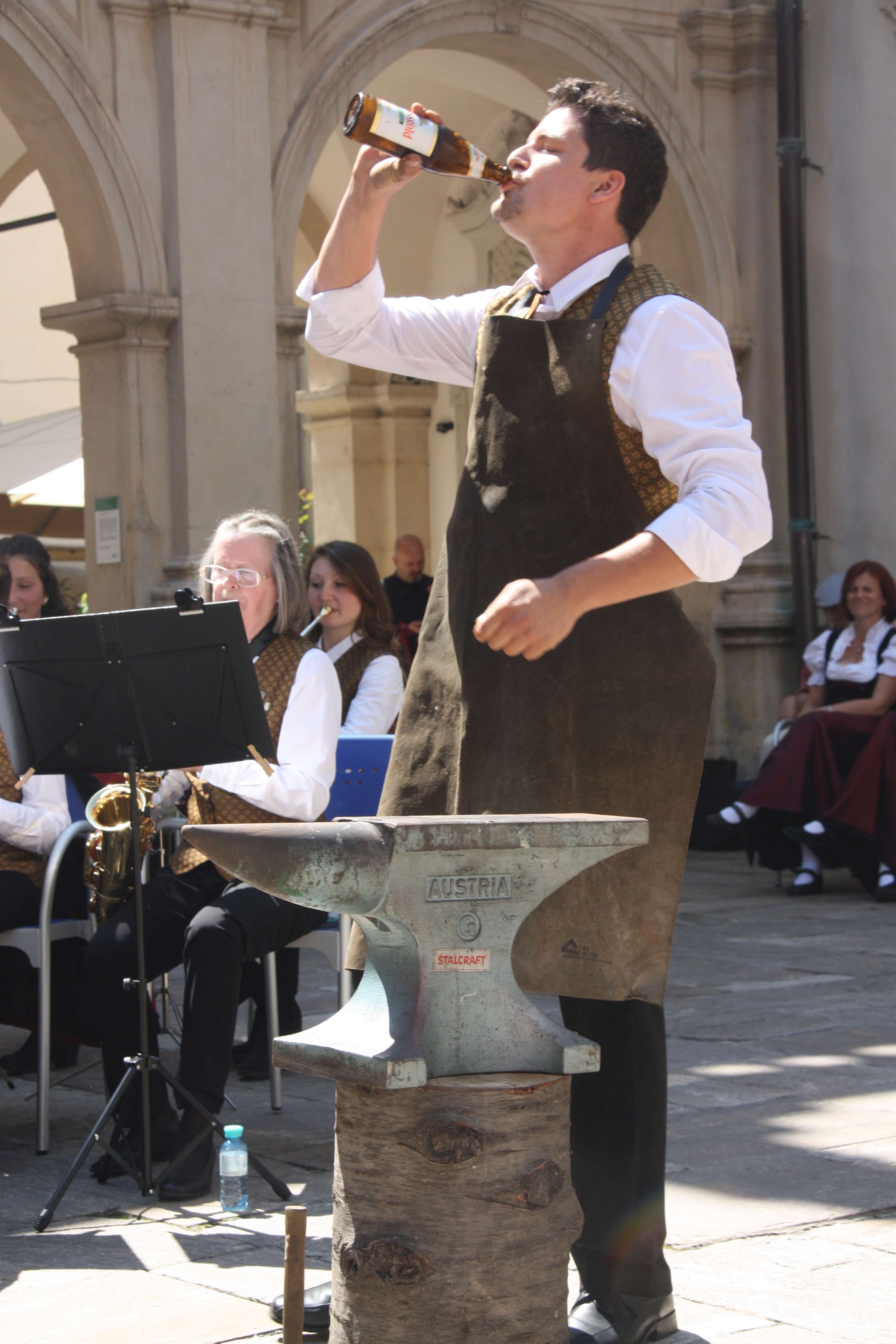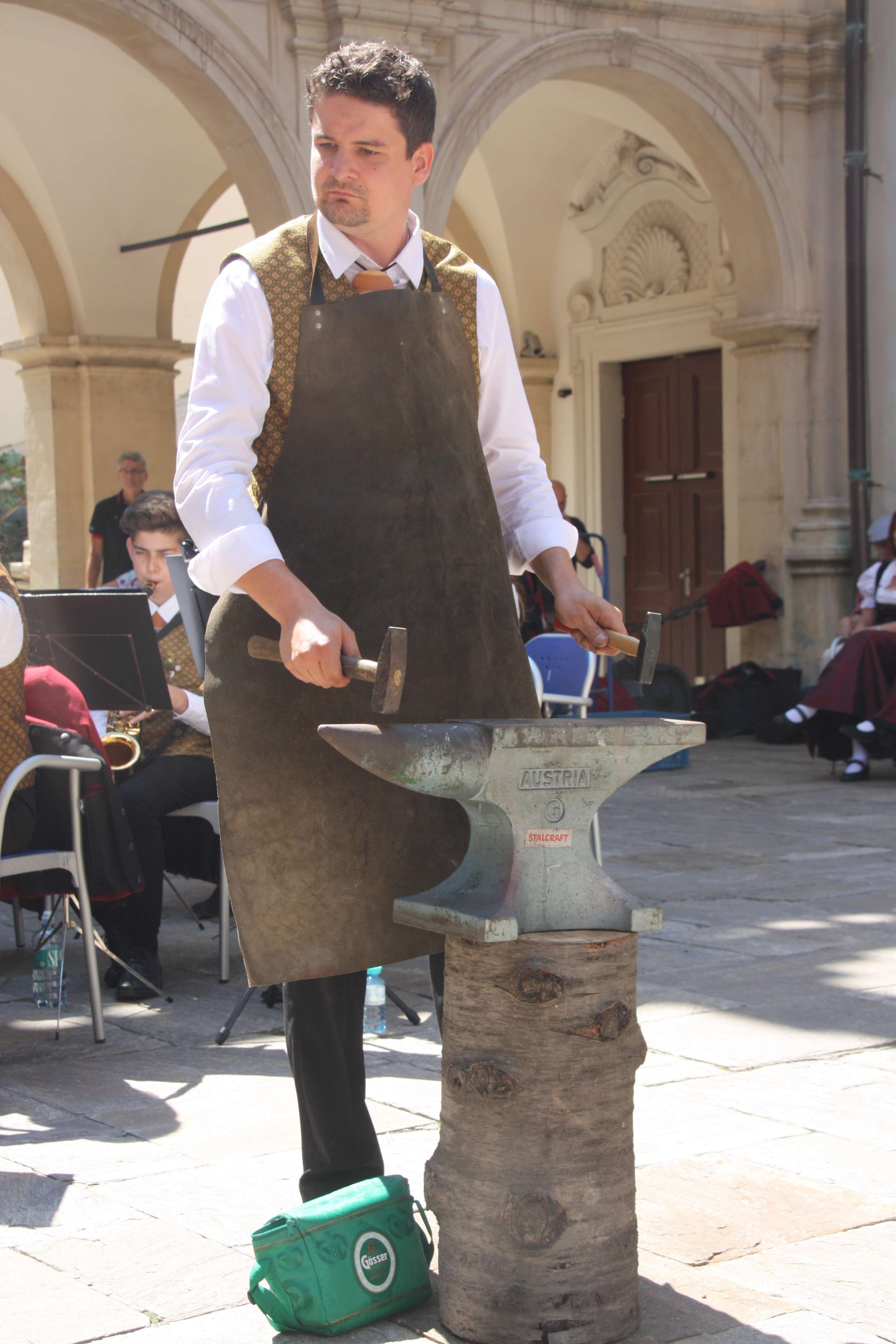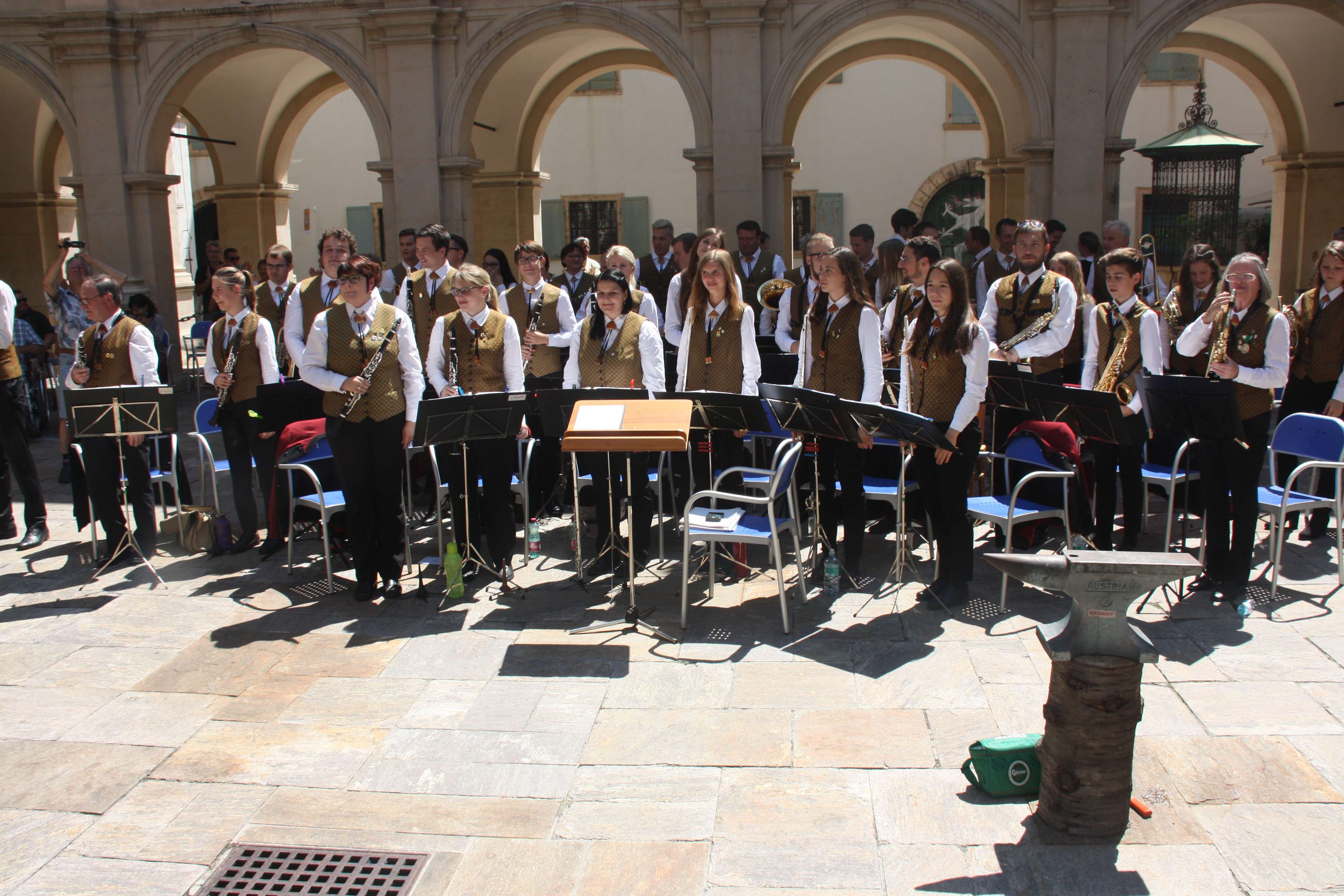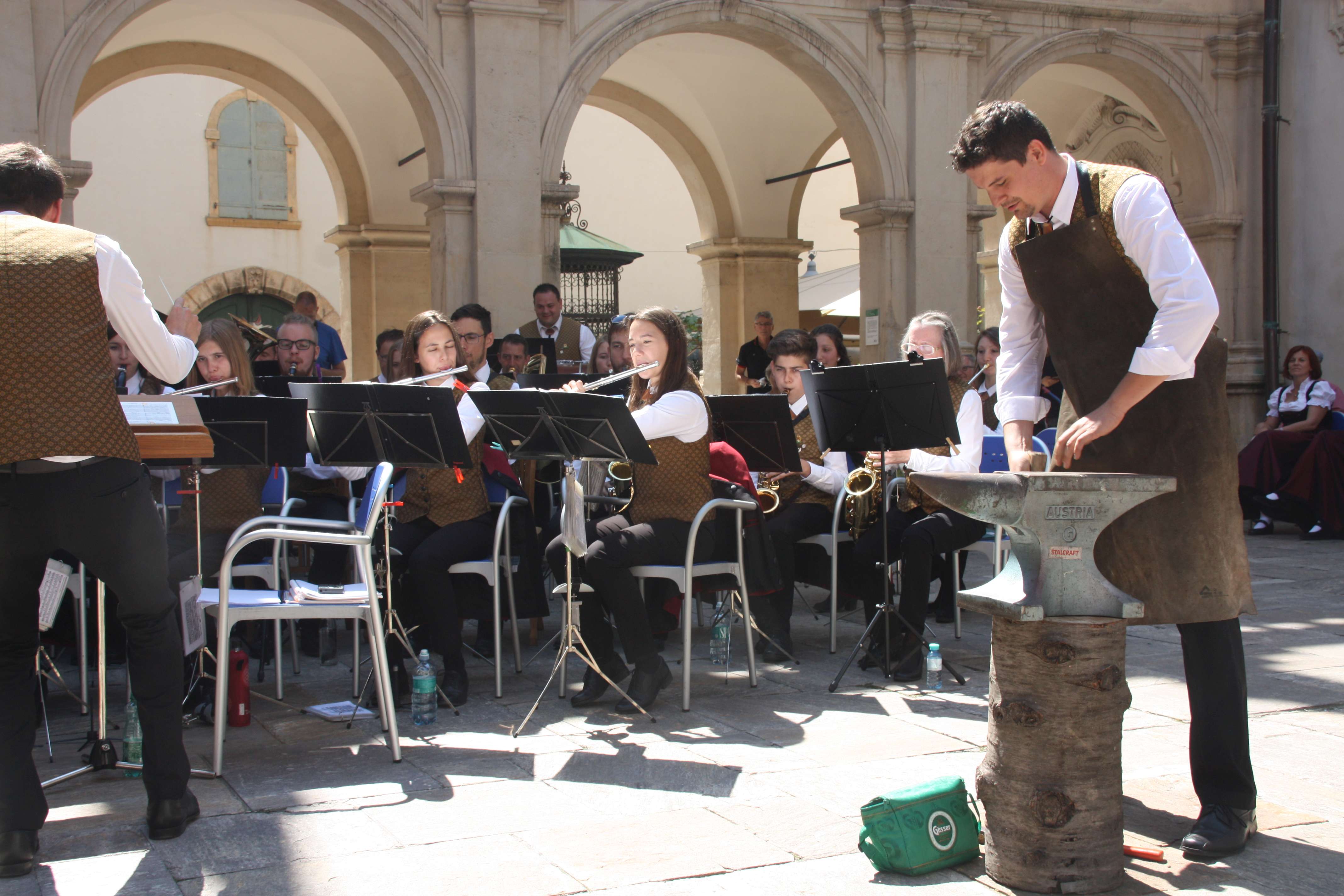 Einen besonderen Auftritt – samt Extraapplaus – hatte auch Georg Laffer. Für gewöhnlich in der hintersten Reihe beim Schlagzeug, stand er diesmal ganz vorne am Amboss. Dieser wurde für die Polka Feuerfest von Josef Strauß für ein paar Minuten zum Musikinstrument umfunktioniert.