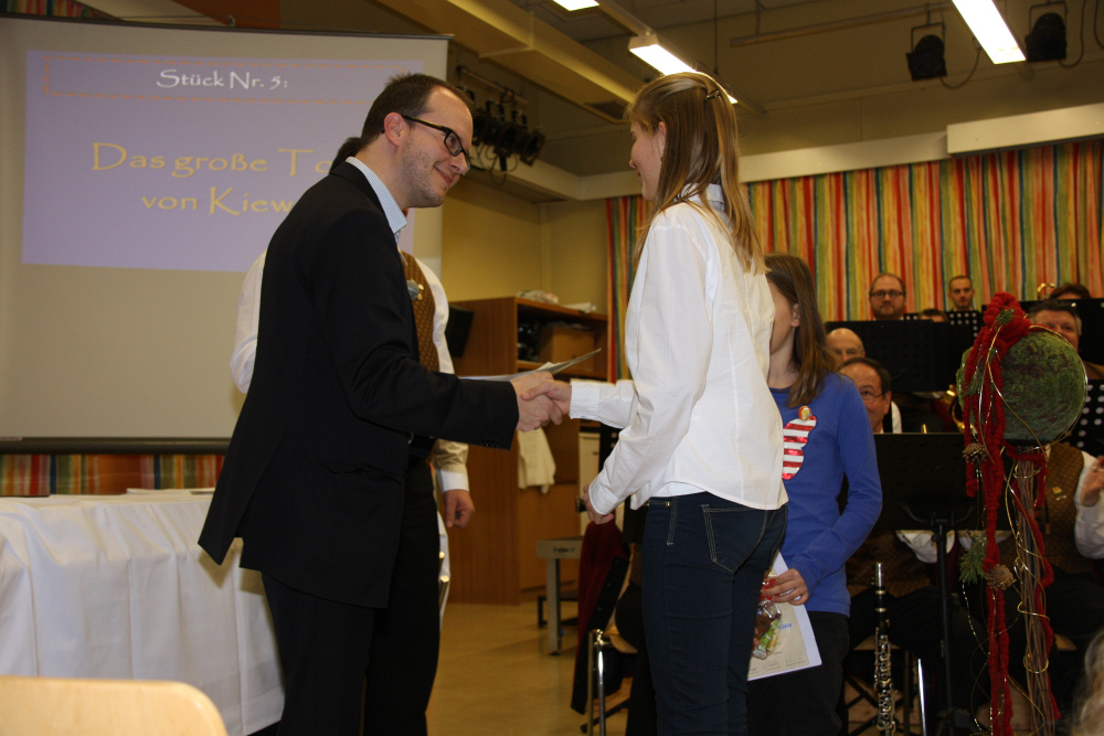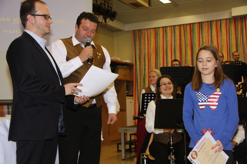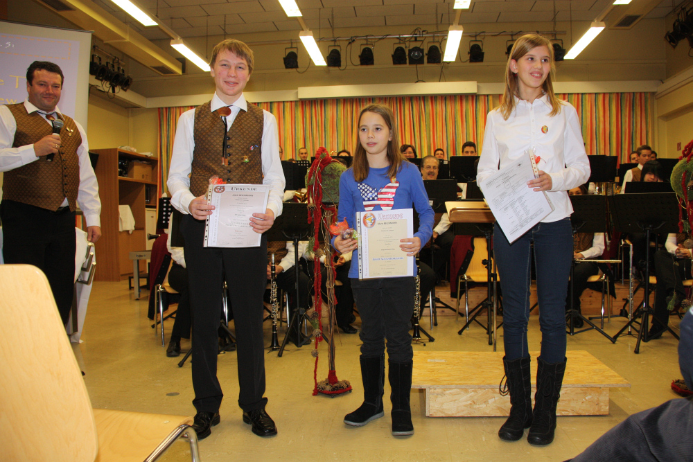 Nach dem ersten beschwingten Stück „Festmusik der Stadt Wien“ begrüßte unsere Obmann Titus Laffer die Gäste. Die Stücke wurden wieder altbewährt durch Texte von Andi Domweber angekündigt. Nach dem ersten Teil und dem Auftritt des Jugendensembles wurden JML Ehrungen mit Bezirksobmann Gernot Hauswirth durchgeführt. So gratulieren wir herzlich Anna Schusteritsch und Marie Reichmann zum bestandenen „Junior“ Leistungsabzeichen, Jakob Reichmann zum bestandenen JML in Bronze und Irina Augustin und Fabian Öttl zur offiziellen Aufnahme in den Musikverein Liebenau.
